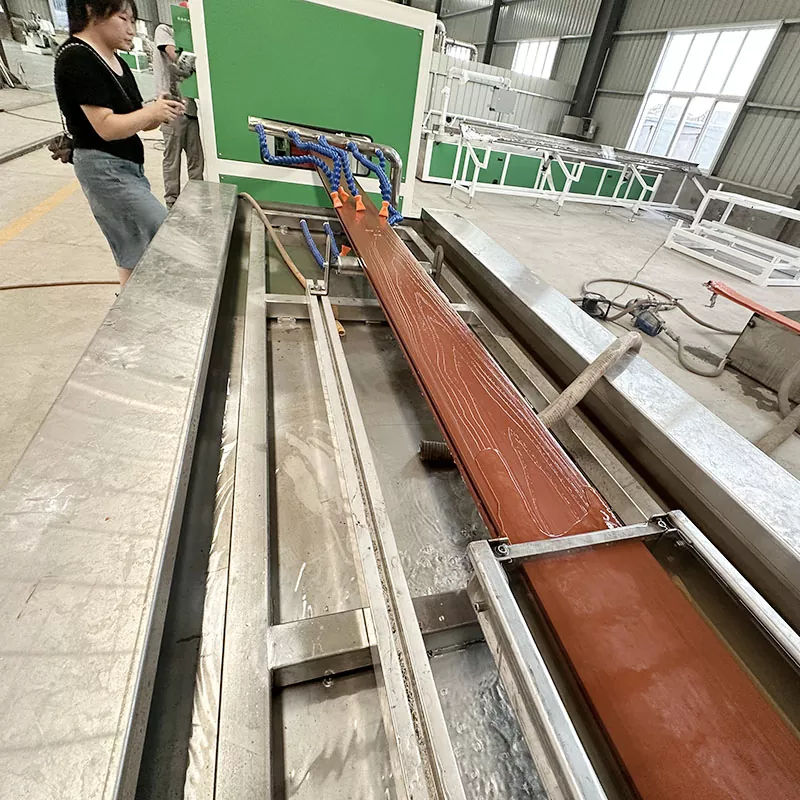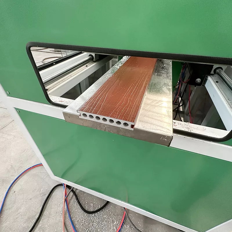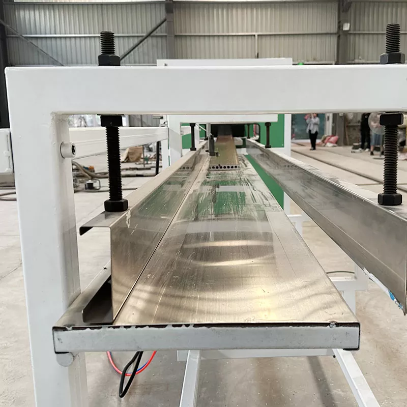Kalup opreme za proizvodnjo talnih površin s koekstruzijo PVC na prostem je izdelan iz materiala za kovanje jekla 3CR13, ki je natančno obdelan s CNC strojem in poliran. Glava dleta iz zlitine Pin-lock: vsi trije stroji so zamenljivi, uporabljajo tehnologijo posebne zlitine in profesionalno formulo, kar je 2- do 3-krat daljša življenjska doba drugih glav dleta.